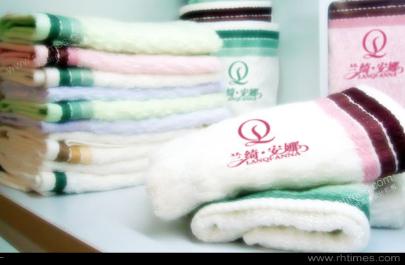 蘭綺安娜品牌標志設計,蘭綺安娜用品毛巾的特點柔軟、使用舒適,比普通毛巾有更強的吸濕性和柔軟度。毛巾上面的印花是產品品牌logo,整體的結合效果非常好,標志印花不但能增加毛巾的裝飾美,也提高了產品的檔次。